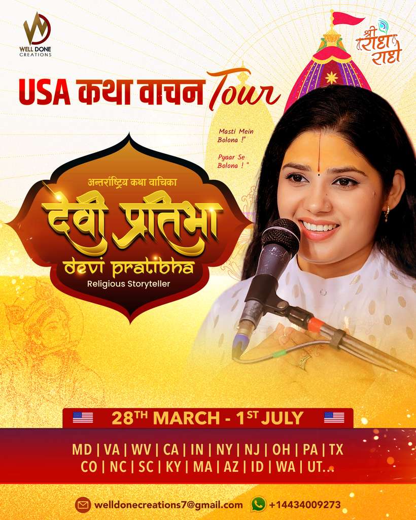 📱 WhatsAppM:+१ ४४३–४००–९२७३ ।देवी प्रतिभाको अमेरिका कथा वाचन यात्रा २०२६ लाई धर्म, श्रद्धा र नेपाली संस्कृतिको पुनर्जागरणको रूपमा हेरिएको छ ।यस यात्राबाट अमेरिकामा रहेका नेपालीहरू र इंडियनहरू ले आफ्नो संस्कार, भक्ति र अनुभव गर्ने अपेक्षा गरिएको छ ।